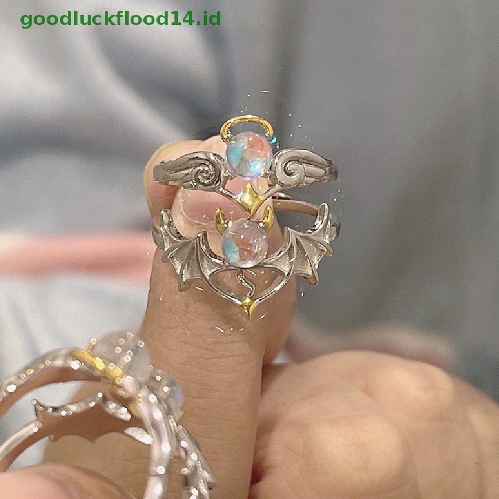 [GOOGFOUR] Moonstone Angel and Demon Wings Cincin Pasangan Untuk Wanita Fashion Cincin Pembukaan Yang Dapat Disesuaikan Perhiasan Pesta [TOP]