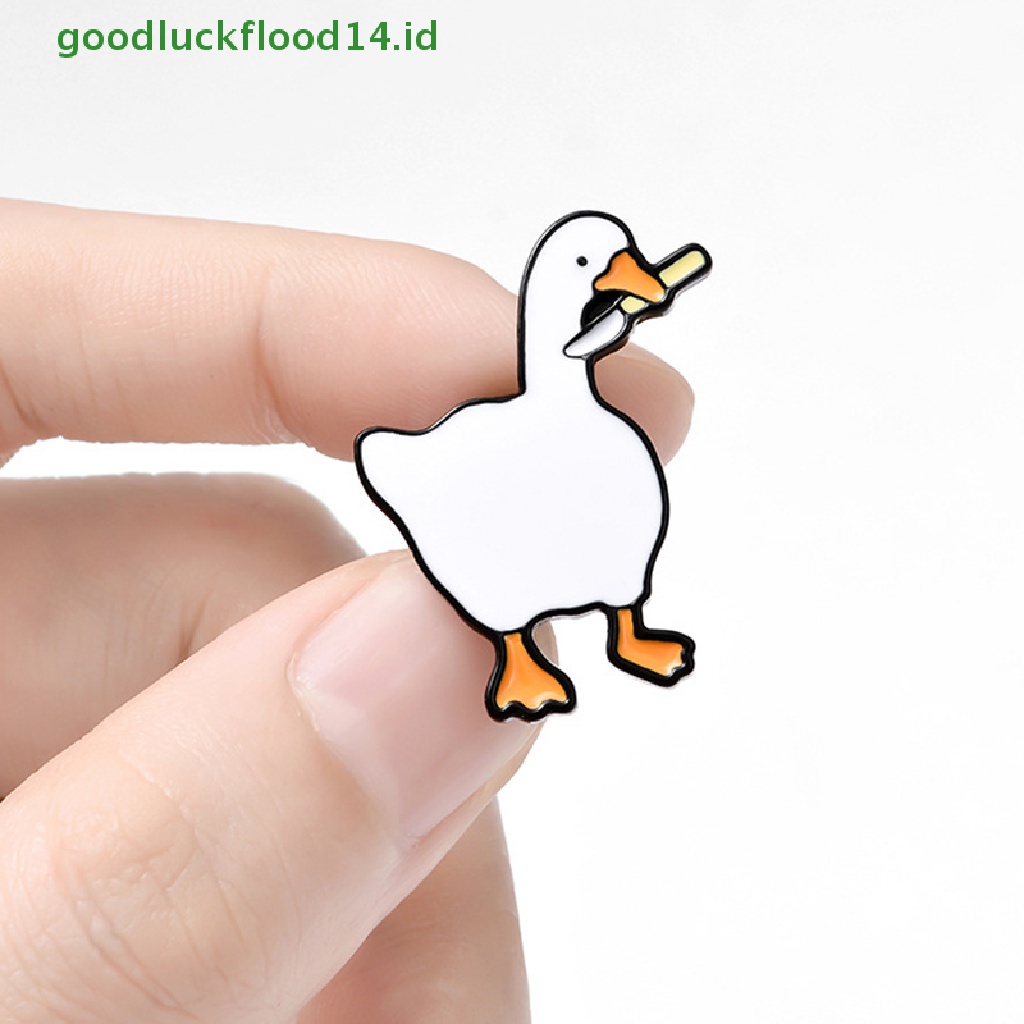 Detail [GOOGFOUR] Permainan Menyenangkan Angsa Bros Kartun Lucu enamel Angsa Putih Lencana Kerah Pin [Atasan]