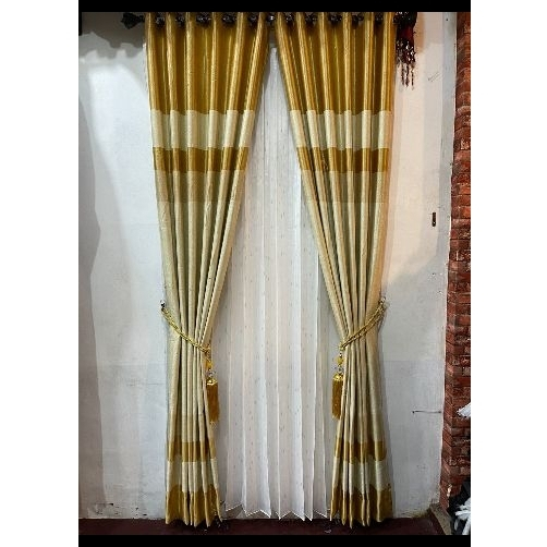 Detail Gorden Blackout Import Warna Gold Motif Pelangi Untuk Jendela Minimalis Daun Pintu Model Smokring