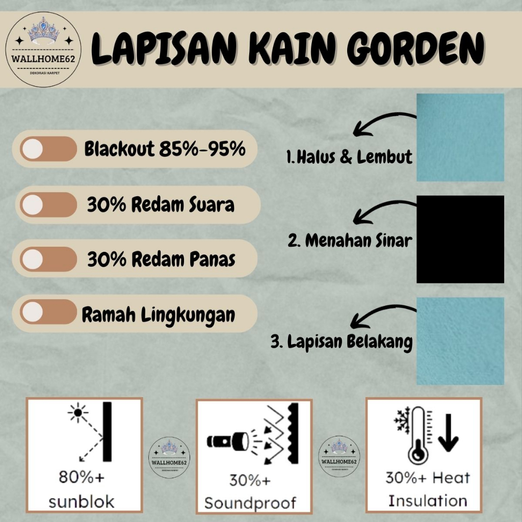 untuk ukuran gorden kami di hitung dari : L x T ( lebar x tinggi)