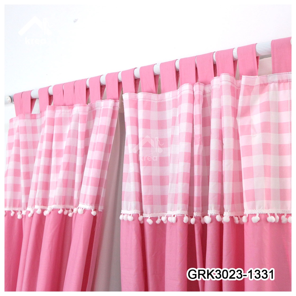 * Bahan Katun ( Banyak Pilihan Motif ) * Harga Yang Tertera Untuk 1 Helai/pcs Gorden * GRATIS Tali Pengikat Kain. * Memakai Model 8 pengait diatas bagian gorden. * Lipatan gelembung gorden ada 4 lipatan. * Terdapat hiasan pompom diatas gorden. * Bagian atas motif dan bagian bawah polos.