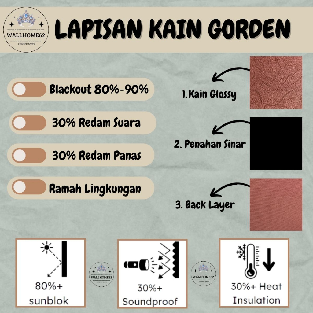 Bahan Blackout 80% - 90% ukuran ada dalam pilihan varian etalase diantaranya :