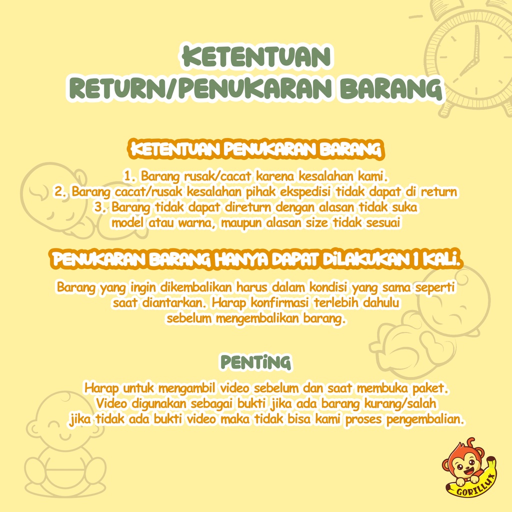 SIZE CHART : ๐ธ Size NB 0-3 Bulan (3-5 Kg) ๐ธ Size S 3-6 Bulan (5-7 Kg) ๐ธ Size M 6-9 Bulan (7-9 Kg) ๐ธ Size L 9-12 Bulan (9-12 Kg)
