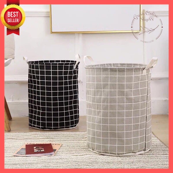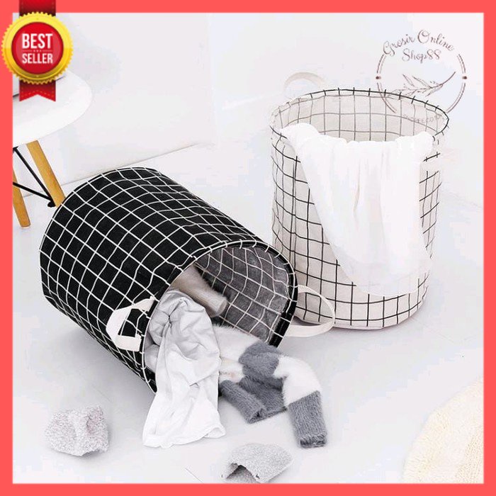Keranjang terbuat dari bahan cotton linen, bahan cukup tebal dan anti air. Bahan bisa dilipat atau diberdirikan. Pada bagian atas keranjang terdapat lingkaran kawat besi Ruang dalam cukup luas, bisa muat banyak pakaian.