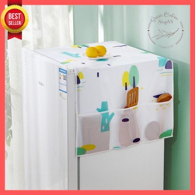 Penutup bagian atas kulkas berfungsi sebagai pelindung dari debu / kotoran, agar kulkas bagian atas tidak baret/ tergores. Juga berfungsi sebagai dekorasi yang dilengkapi dengan kantong (3 kantong masing2 sisi) untuk menaruh barang2 keperluan dapur. Mudah dicuci jika terkena noda karena bahan waterproof.