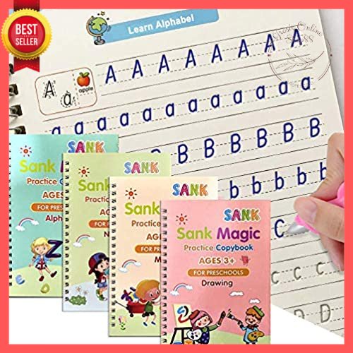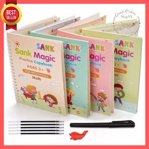 1 Paket Lengkap terdiri dari: - Buku belajar menulis Huruf - Buku belajar menulis Angka - Buku belajar menulis dan berhitung - Buku belajar menggambar - 1 Pen dengan 5 refill/isi ulang Magic Ink (1 terpasang + 4 cadangan)