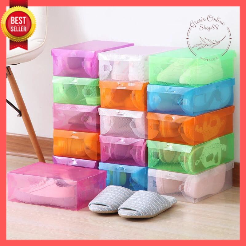 Deskripsi Produk : Produk Import 100% Bahan : Solid PVC (Plastik) PP Transparant Anti Debu Stylish dan Rapi Sepatu Mudah Terlihat Color: Warna Warni Model : regular dengan bukaan atas Size: 28 x 18 x 10cm Tebal : 0.8mm Fungsi kotak sepatu transparan sbb: - Merapikan lemari sepatu Anda. - memudahkan memilih sepatu yang ingin Anda pakai. - Dapat dilipat kembali jika tidak terpakai, sehingga menghemat tempat. - Menghindari sepatu dari debu dan kotoran, serta lubang ventilasi agar sepatu tidak lembab.
