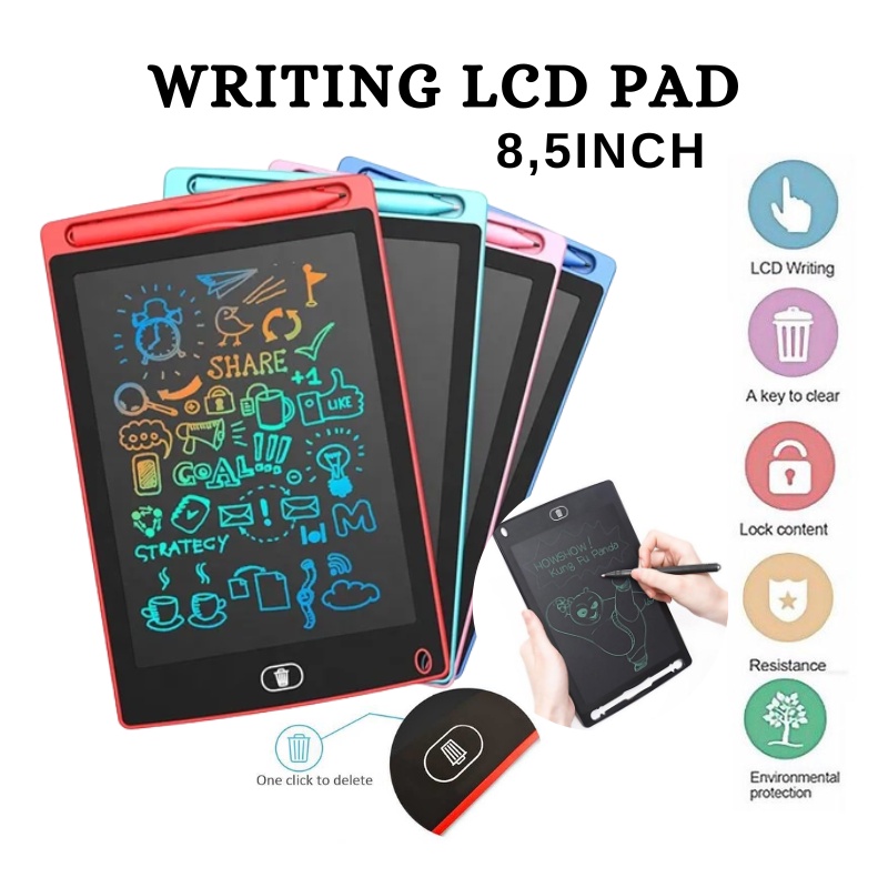Spesifikasi: - 8.5" LCD Drawing Writing Tablet. - Bahan : ABS. - Ukuran : 22.6 x 14.5 x 0.3cm - Power Supply : Baterai Kancing