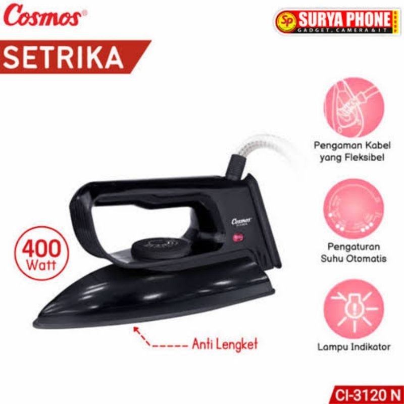 Elektronik > Setrika & Mesin Uap > gosokan comos CI3120 400w garansi resmi cosmos setrika cosmos CI 3120 gosokan baju cosmos seterika baju cosmos black