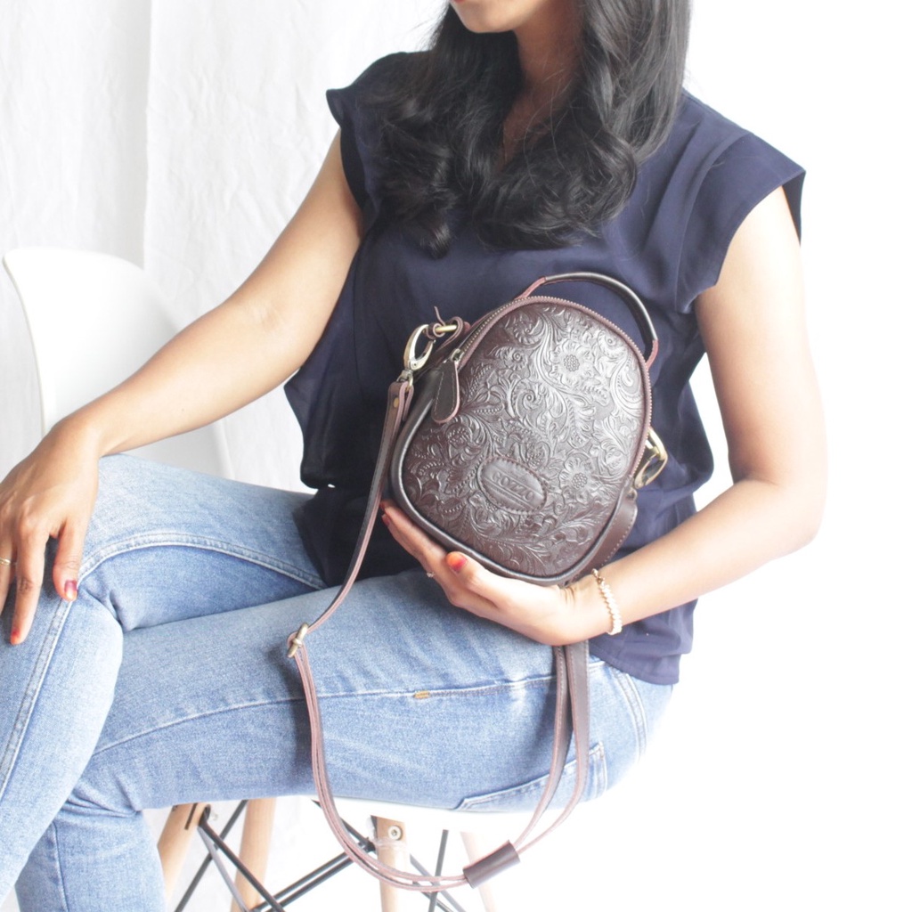 Detail GOZZO LEATHER TAS SELEMPANG WANITA KULIT SAPI ASLI MIDI KULIT EMBOS BATIK / FREE GRAVIR NAMA DI GANTUNGAN TAS