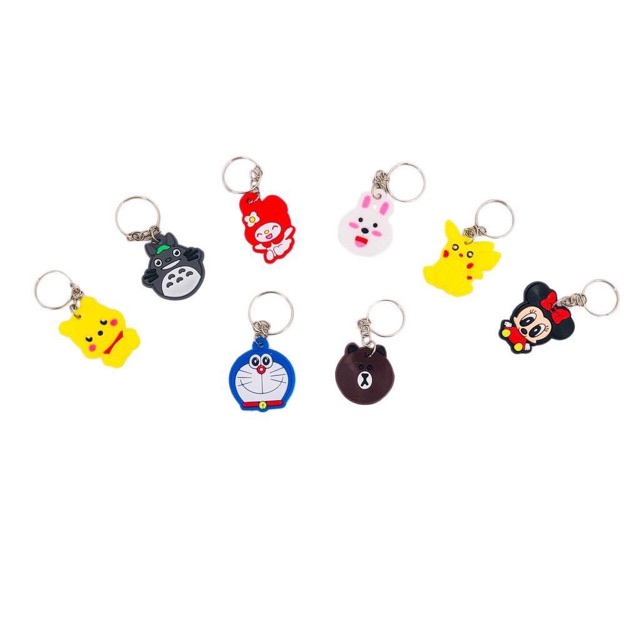 beragam gambar kartun, sangat lucu, bahan yang terbuat dari PVC karet lembut, tebal dan bertekstur, digantung ke kunci sangat lucu. Ukuran: Panjang sekitar 5cm