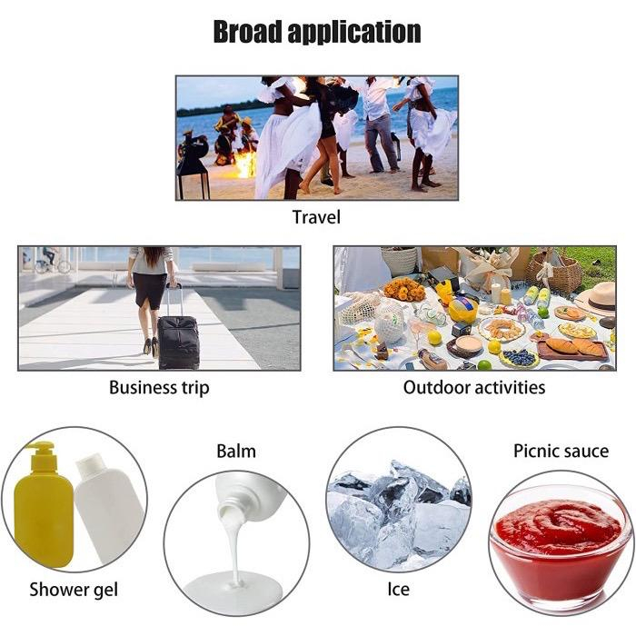 โข SPESIFIKASI : 1. Anti Bocor Atau Pun Tumpah. Cocok Untuk Travelling. 2. Tidak Berat, Mudah Di Bawa, Dan Cocok Untuk Travelling. 3. Bahan Elastis, Hemat Tempat, Dapat Dimasukkan Ke Dalam Tas Kosmetik/Dompet. 4. Dapat Digunakan Untuk Shampoo, Conditioner, Lotion, Sabun, Cream, Dan Sebagainya. 5. Mudah Dibersihkan. 6. Kuat, Tebal, Ramah Lingkungan, Tidak Berbau, Penyegelan Yang Baik