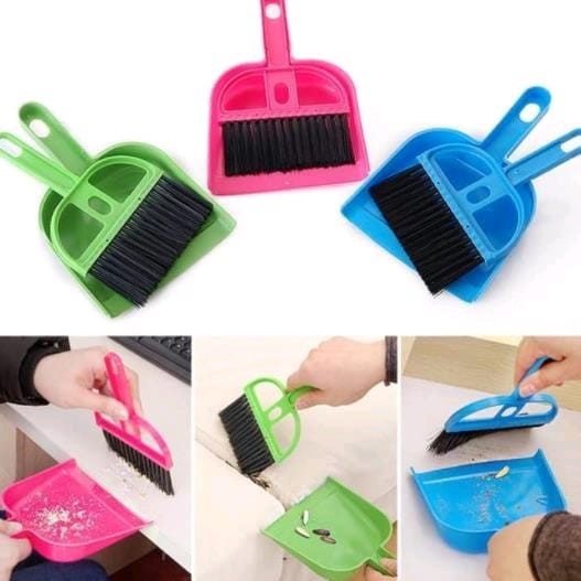 Sapu dan pengki mini berbahan plastik yg simple dan midah di gunakan utk membersihkan bagian yg sulit dijangkau.