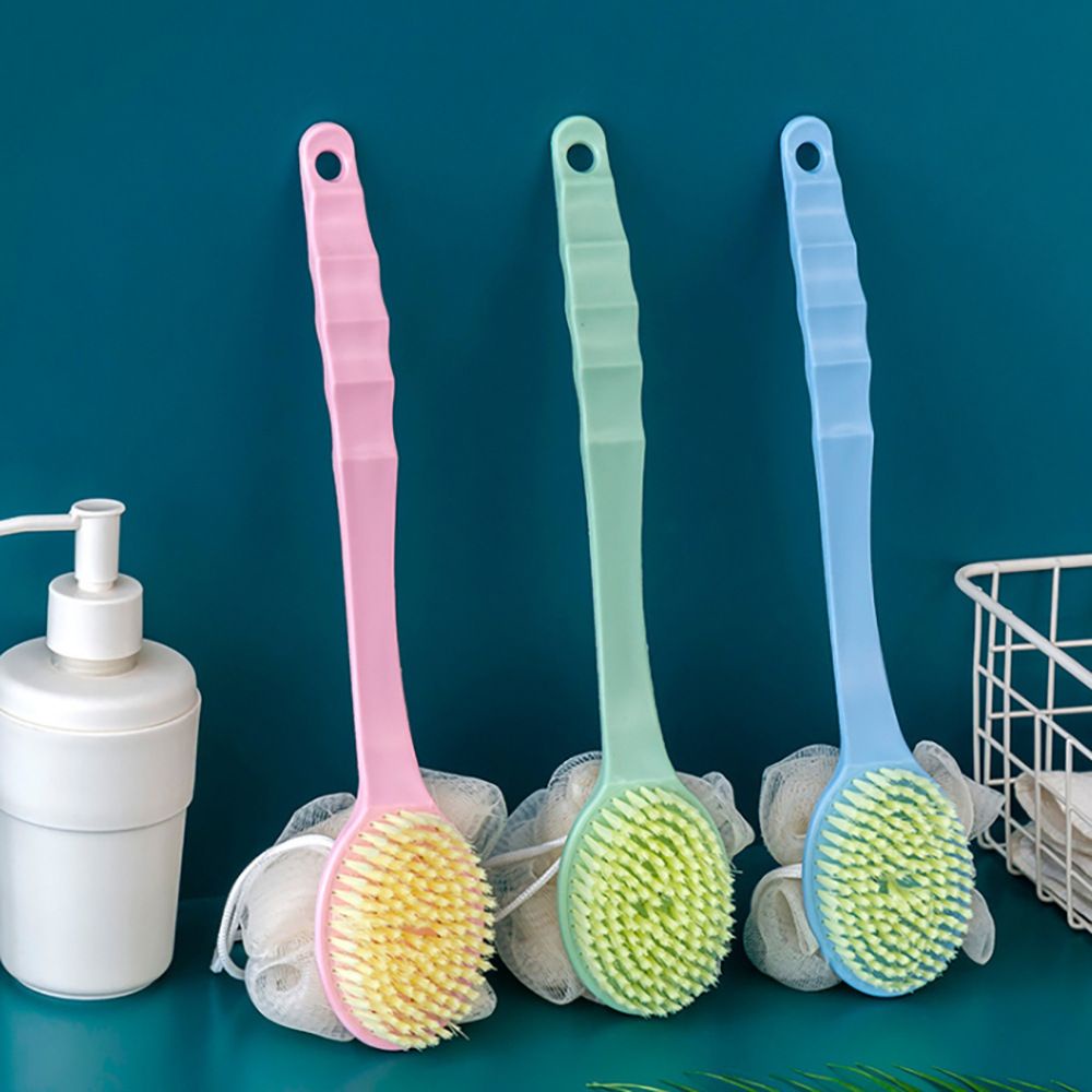 Sikat mandi ini punya dua sisi, satu sisi dengan bulu lembut untuk menggosok punggung/kulit mati. satu sisi sebagai pemijat untuk memujit punggung.