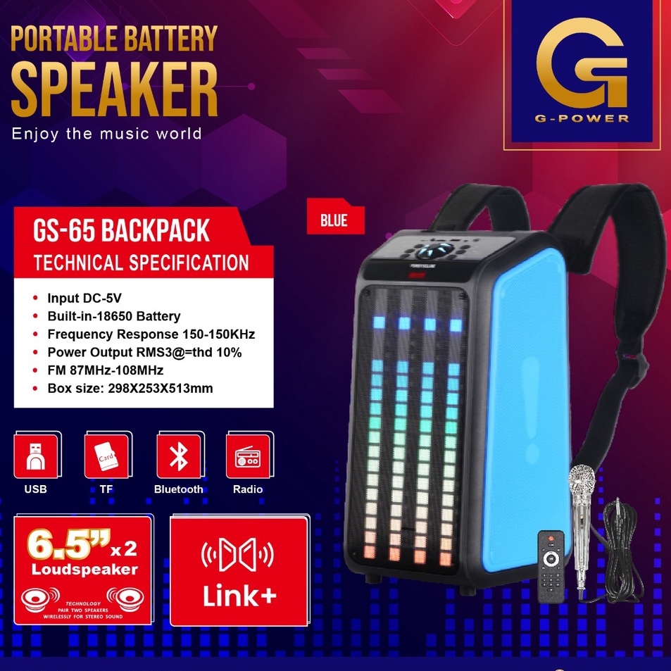 GPOWER Speaker Bluetooth GS-65 BACKPACK FREE MIC Karaoke Super Bass Speaker Aktif Portable Termurah
