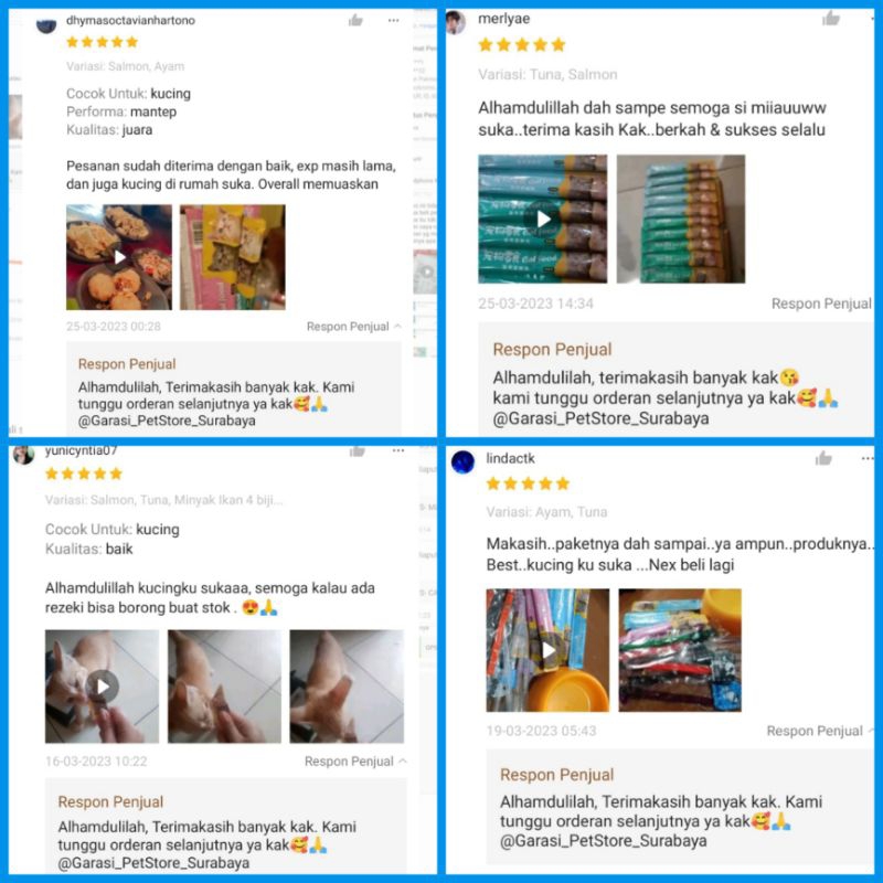 Video perkenalan produk GPSS- LIEBAO CREAMY Snack Kucing 15g Cemilan Kucing Kitten Adult Vitamin Kucing Basah Penggemuk Kucing Minyak Ikan Makanan Kucing Kitten Adult Makanan Kucing Makanan Penggemuk Kucing Vitamin Anjing Snack Kucing Snack Anjing Sosis Kucing Sosis Anjing. Sumber: Shopee.