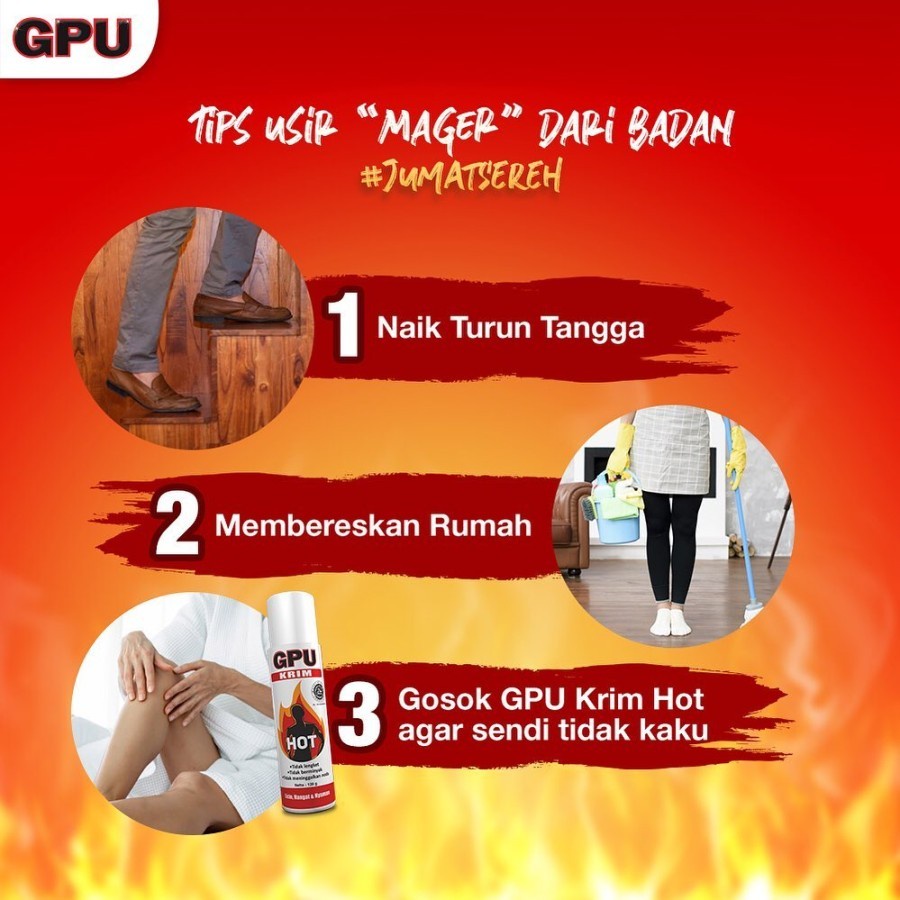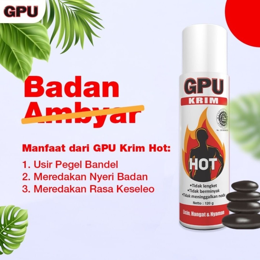 GPU Krim Hot Krim Yang bisa digunakan untuk Gosok dan Pijat membantu meredakan Pegal linu, nyeri sendi, sakit punggung, keseleo dan memar.