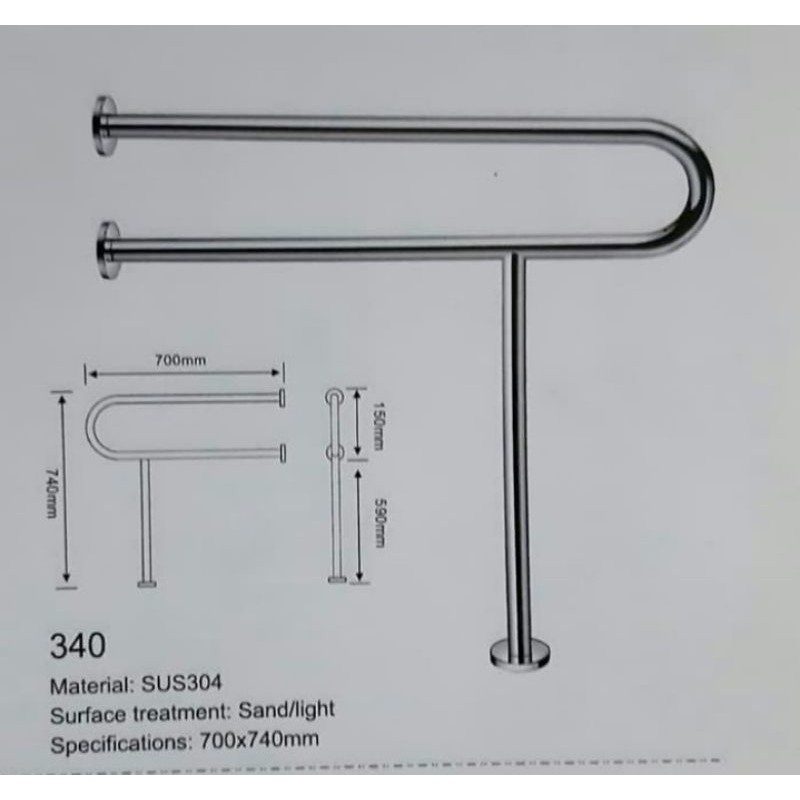 Grab bar stainless Disabelity safety / Disabelity kaki / pegangan Lansia / Pegangan toilet