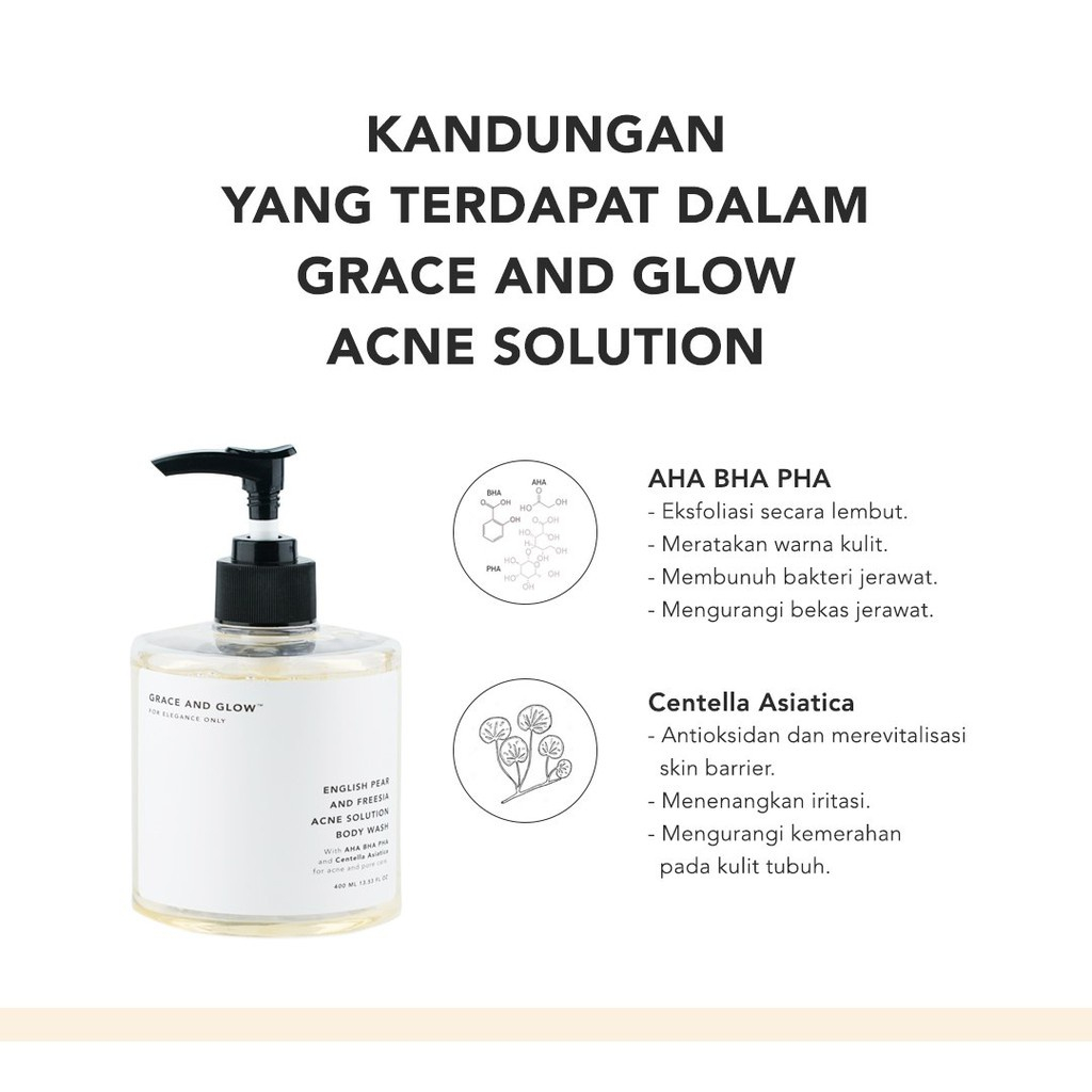 Grace & Glow English Pear and Freesia Anti Acne Solution Body Wash with AHA + BHA + PHA + Centella Asiatica