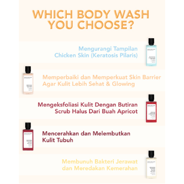 Tuangkan Body Wash di tangan atau shower puff secukupnya, secara lembut gosok perlahan dan bersihkan semua bagian tubuh terutama pada bagian yang berjerawat dan kemerahan. Bilas menggunakan air. Gunakan setiap hari untuk hasil yang maksimal