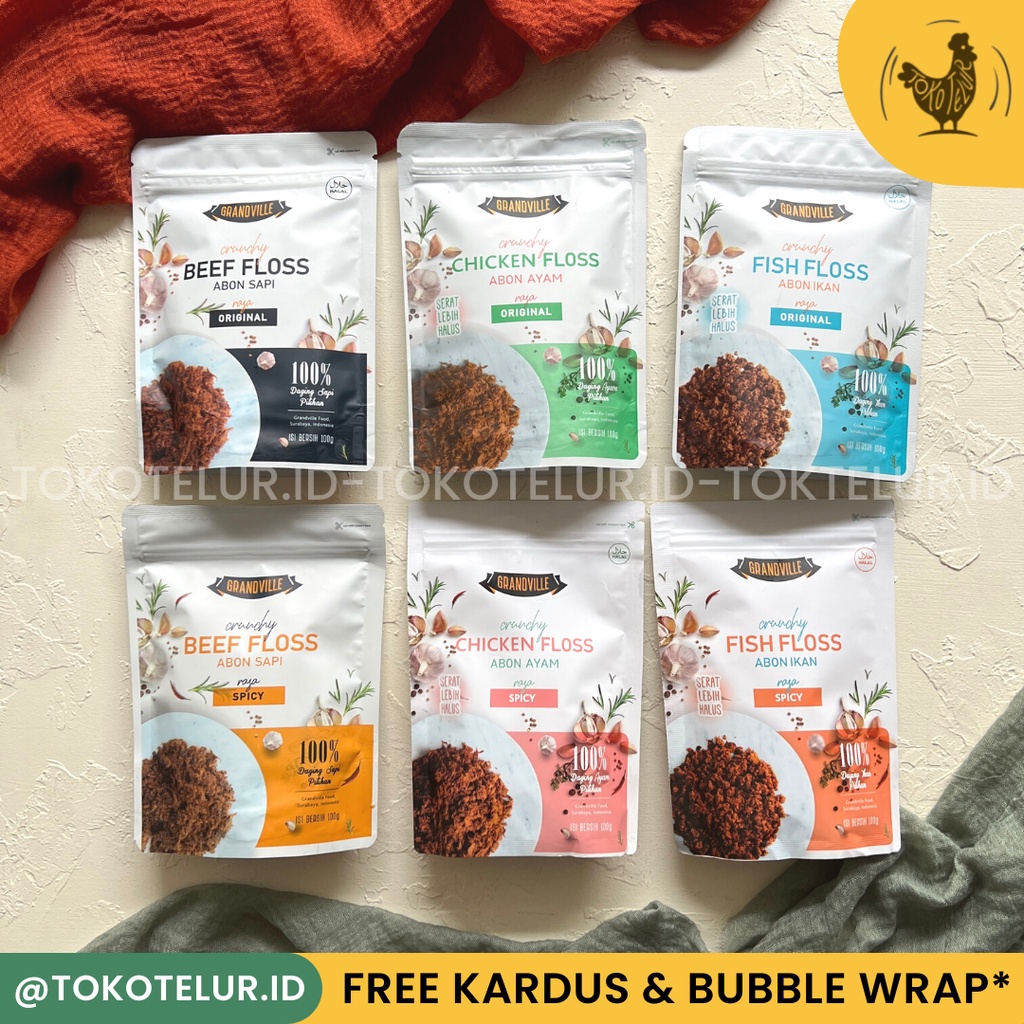 [PREMIUM] Grandville Abon (SAPI-AYAM-IKAN) Terdapat 6 variasi rasa: - Abon Sapi Original - Abon Sapi Pedas (Spicy) - Abon Ayam Original - Abon Ayam Pedas (Spicy) - Abon Ikan Original - Abon Ikan Pedas (Spicy)
