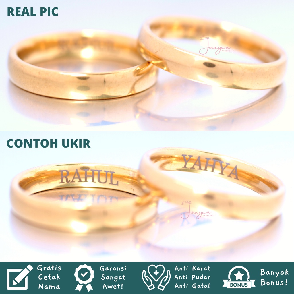 Detail [GRATIS CETAK NAMA] Cincin Couple Pasangan Titanium M17 Romantis Gold Emas Anti Karat Hadiah Tunangan Pria Wanita