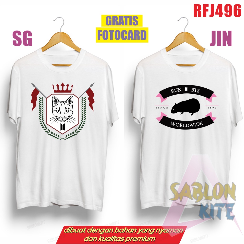 Detail Gratis Fotocard ! Kaos Kpop Run BT logo BESAR animal RFJ496 RM JK JH JM SG JIN VI
