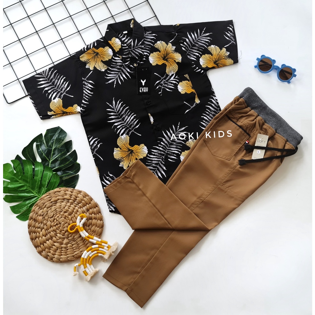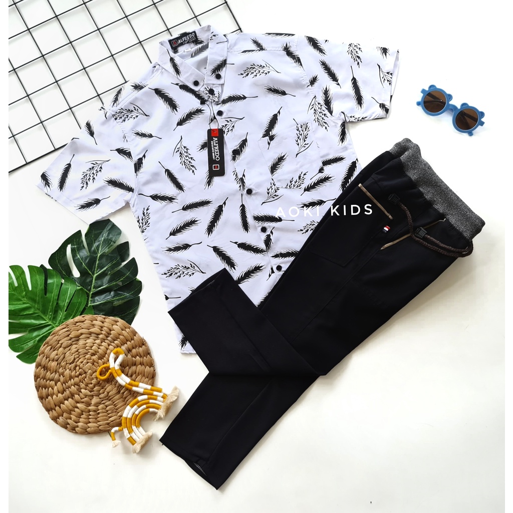 GRATIS ONGKIR// COD// Warna Setelan kemeja Lengan Pendek Motif Keren Celana chinos panjang anak usia 2-12 tahun berkualitas