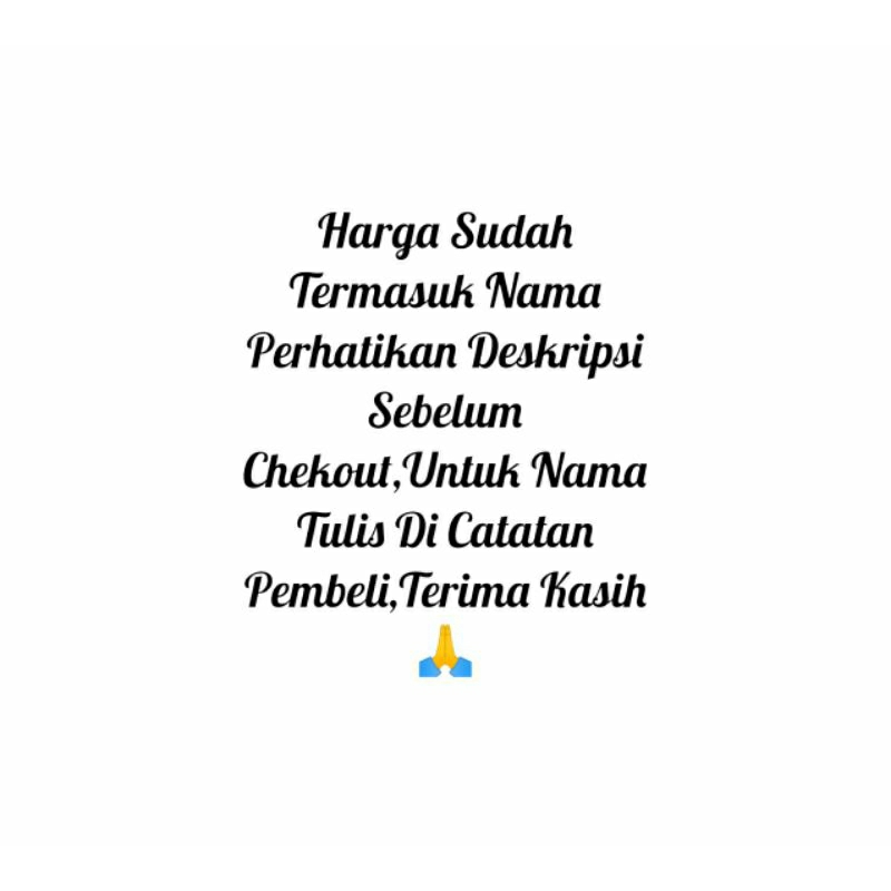 UNTUK REQUEST NAMA CANTUMKAN DI : PESAN/CATATAN ORDER ATAU CHAT/INBOX. JIKA TIDAK ADA DI PESAN/CATATAN ORDER ATAU CHAT/INBOX MAKA KAMI KIRIM BAJU TANPA SABLON.
