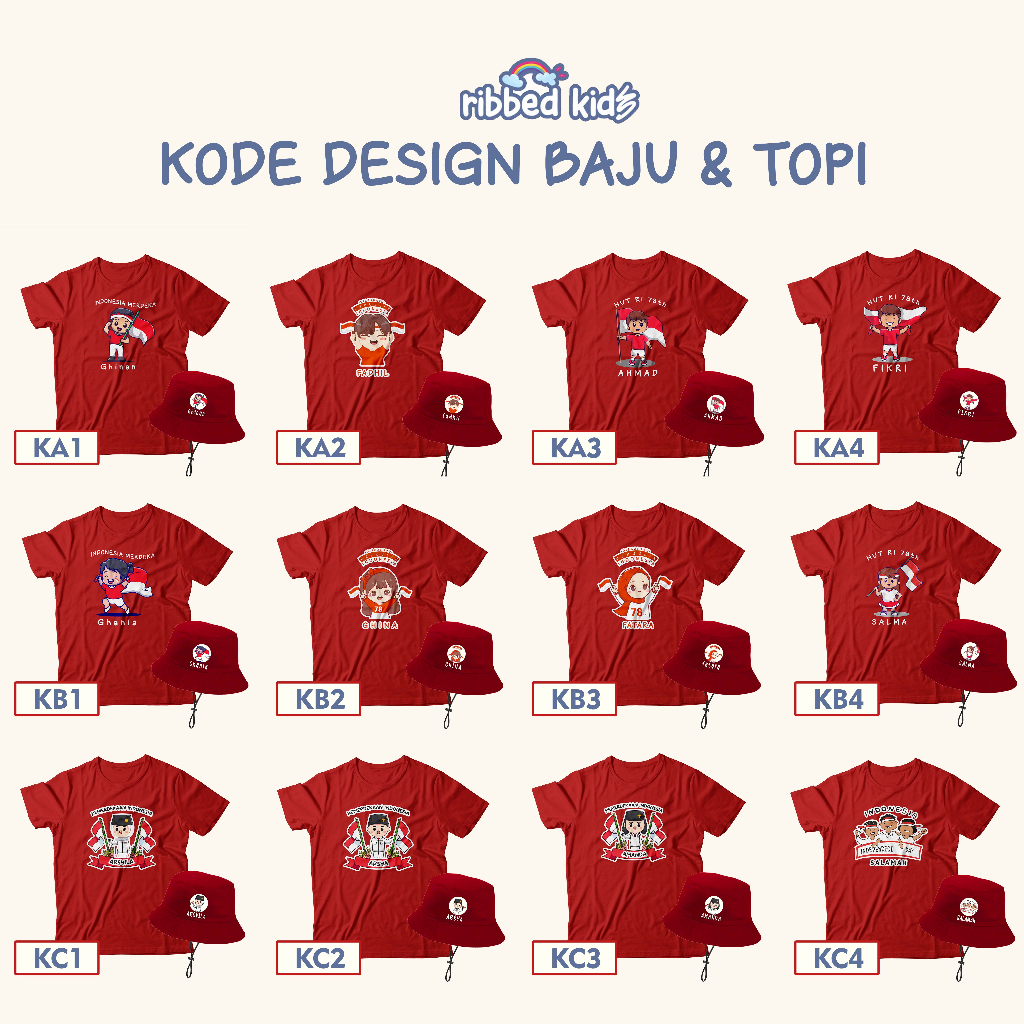 Detail GRATIS SABLON NAMA | SPESIAL BUNDLE SPESIAL KEMERDEKAAN 17 AGUSTUS KAOS DAN TOPI ANAK LAKI-LAKI & PEREMPUAN 1-6TH | ATASAN KATUN COMBED 30s By Ribbedkids