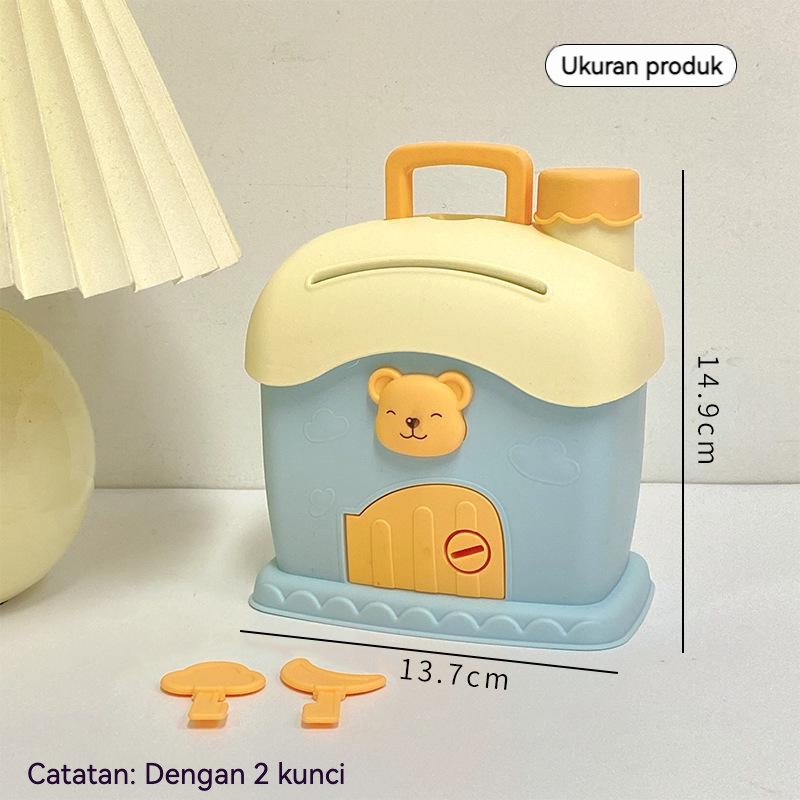 【Gratis Stiker】Celengan berbentuk rumah jamur dengan pengunci berkapasitas besar untuk melatih kebiasaan anak dalam menabung