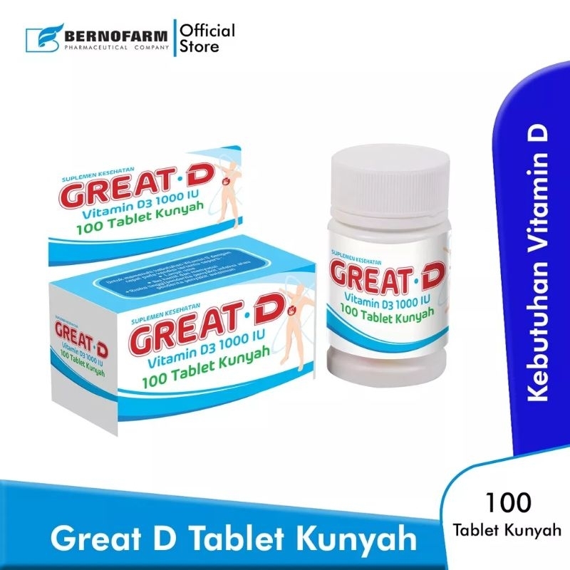 Stres, sering merokok, konsumsi alcohol. kurang tidur, dan konsumsi obat-obatan tertentu bisa menyebabkan kadar vitamin D dalam tubuh menurun. Jika tubuh kekurangan vitamin D, maka bisa menyebabkan nyeri otot, nyeri punggung, nyeri tulang, tubuh mudah lelah, mudah terserang penyakit, depresi bahkan mengganggu sistem pertahahan tubuh terutama saat kondisi pandemi seperti sekarang ini. Vitamin D bisa diperoleh dari aktivitas berjemur selama 10-15 menit di pagi hari atau dengan mengonsumsi makanan atau minuman yang kaya akan vitamin D seperti telur, ikan, daging, dan susu. Selain itu, kini telah hadir GREAT D, vitamin D3 1000 IU yang dapat membantu memenuhi kebutuhan vitamin D harianmu secara cepat. GREAT D isi 100 tablet kunyah, baik untuk dikonsumsi setiap hari, kapanpun dan dimanapun. GREAT D, Great Everyday!