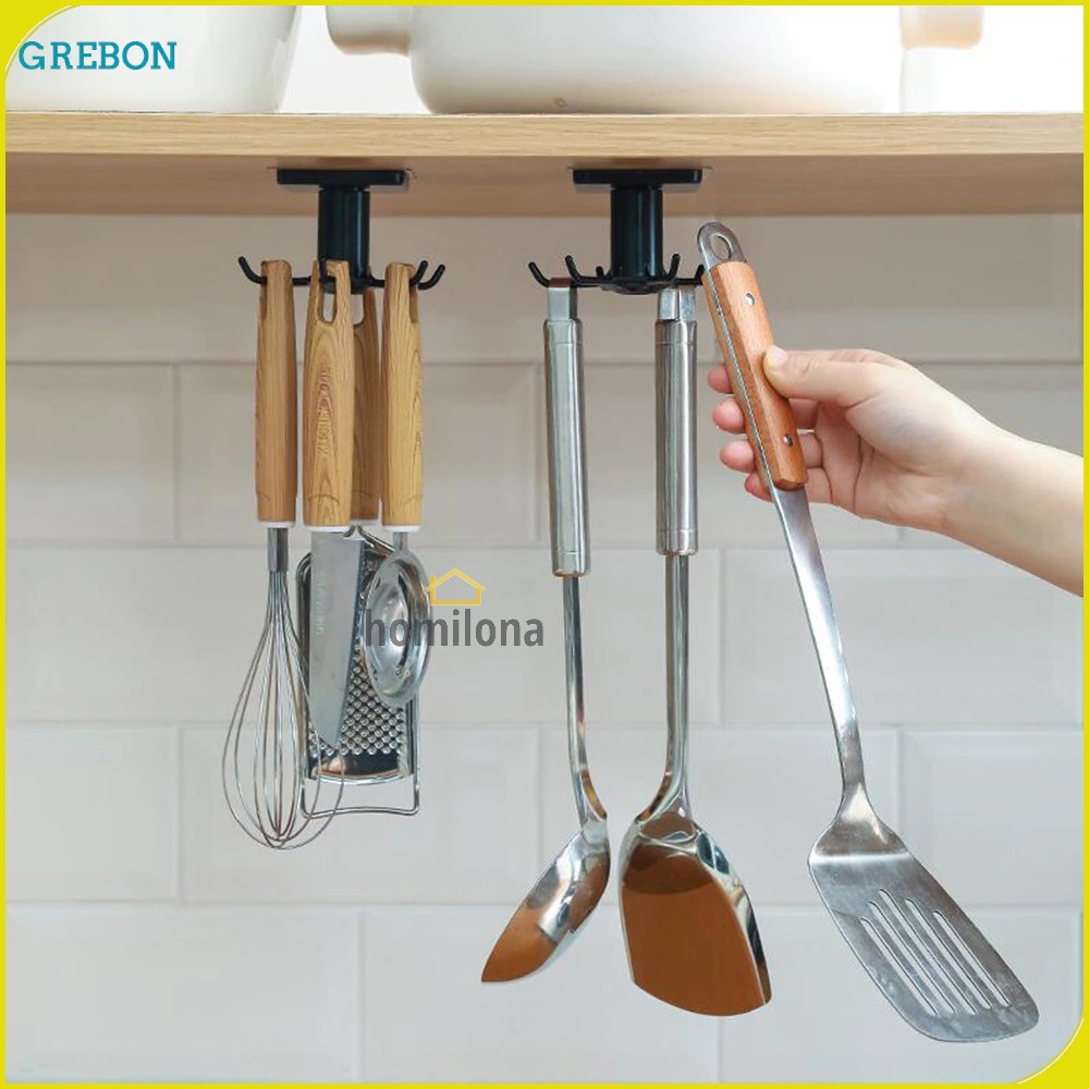 ๐ฃ ISI KEMASAN โ 1 x GREBON Gantungan Peralatan Dapur 6 Hook Hanger - E008 โ 1 x Perekat