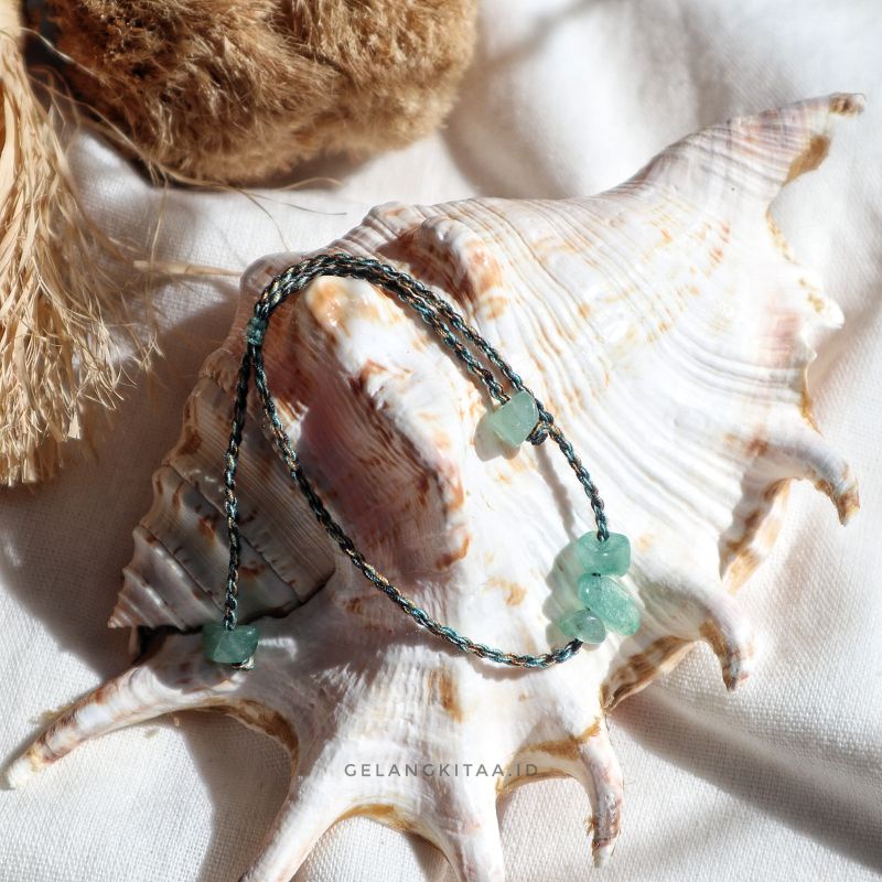 Detail Produk : - Model Tali Ulir / Plintir - Manik Batu Alam Green Aventurine - Model gelang adalah Serut - Tali Berbahan Katun - Ukuran Gelang Adjustable/All Size sehingga bisa disesuaikan ukurannya di tangan kamu