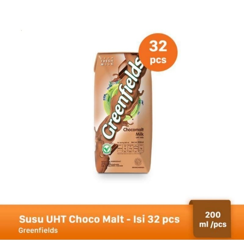 GREENFIELDS UHT merupakan susu cair dari Greenfields yang diformulasi siap minum dengan rasa full cream, stroberi, cokelat yang nikmat untuk memenuhi kebutuhan Kalsium harian Anda dan keluarga. Dibuat dari susu sapi berkualitas dengan proses menggunakan teknologi sterilisasi untuk membunuh bakteri namun tetap mempertahankan kesegarannya. Susu siap minum ini mengandung protein, vitamin, dan mineral penting, seperti kalsium dan fosfor yang bermanfaat untuk kesehatan, tanpa menggunakan bahan pengawet sehingga baik bagi kesehatan tubuh. Hadir dalam kemasan kotak instan untuk konsumsi Anda sekeluarga.