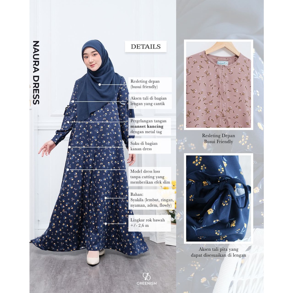 Siapa yang ga asing sama dress satu ini? Yup, salah satu dress yang best seller hadir kembali untuk #greenismlovers 🥰. Naura dress, menggunakan bahan berkualitas Syakila, yang nyaman, flowly, ringan, tidak menerawang, dan ironless... Motifnya sih, juara banget bikin siapapun yang memakainya jadi kelihatan lebih manis dan cantik...