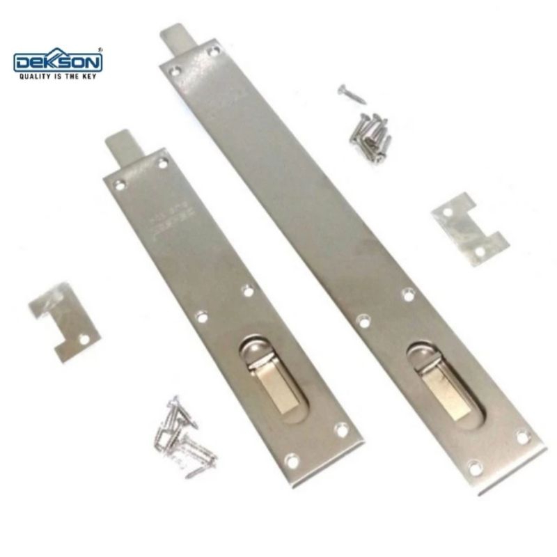 Perlengkapan Rumah > Alat Pengaman > Perangkat Pintu & Gembok > Grendel Tanam Stainless Kotak/Flush Bolt Dekkson Stainless FBP 12 inchi SS