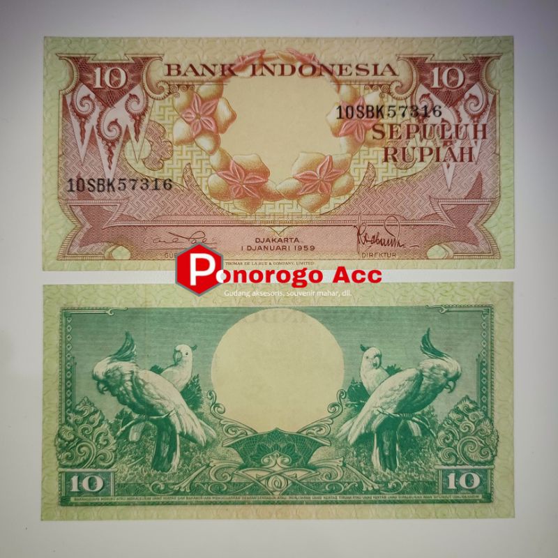 Uang kuno Rp.10 seri bunga Tahun 1959, kondisi sesuai variasi yang dipilih mau yang bekas atau baru/gress/mulus harga sesuai kondisi yang dipilih.