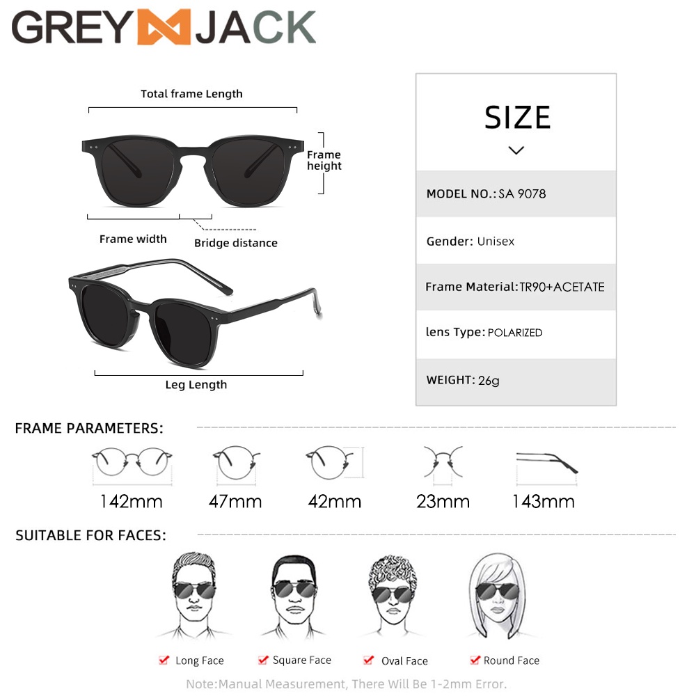 Detail Grey Jack Kacamata Hitam Sunglasses Polarized Anti UV400 Kotak TR90+ACETATE Simple Fashion Pria dan Wanita Keren 9078
