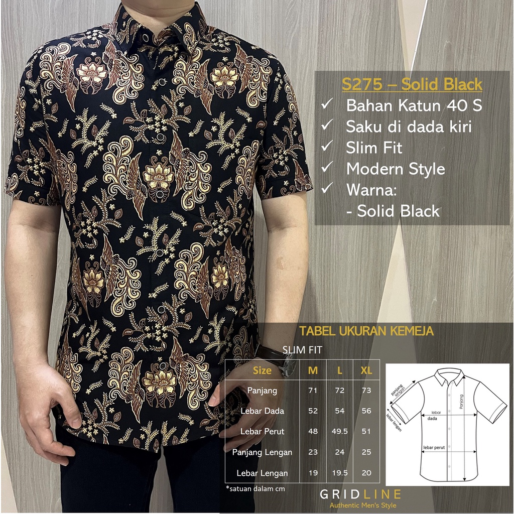 Detail [GRIDLINE - S275 Solid Black] Kemeja Batik Pria Katun Lengan Pendek Slimfit Keren Modern Elegant
