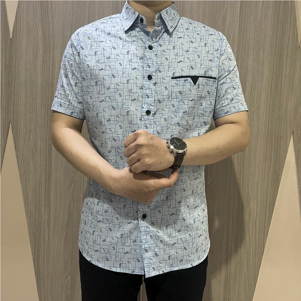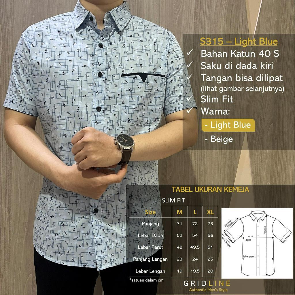 Detail [GRIDLINE S307 Sky Blue - S304 Ceramic Blue - S315 Light Blue] Kemeja Pria Katun Lengan Pendek Slimfit Keren Simpel Adem Simpel Modern Best Seller Laris Pastel M-XXL