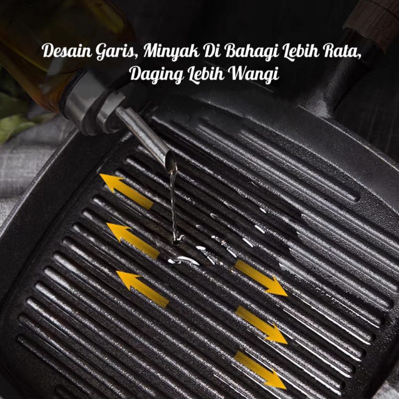 Square Grill Pan ini cocok untuk melengkapi peralatan dapur Anda, dengan alat ini Anda bisa memanggang sosis,ikan,ayam,dll di atas kompor. Penggunaan yang sangat mudah, tinggal menyalakan kompor, tidak perlu kepanasan menggunakan arang. Terbuat dari bahan baja kuat dan tebal dengan lapisan anti lengket. Dengan desain gagang yang ergonomis pas ditangan terbuat dari kerja tahan panas.