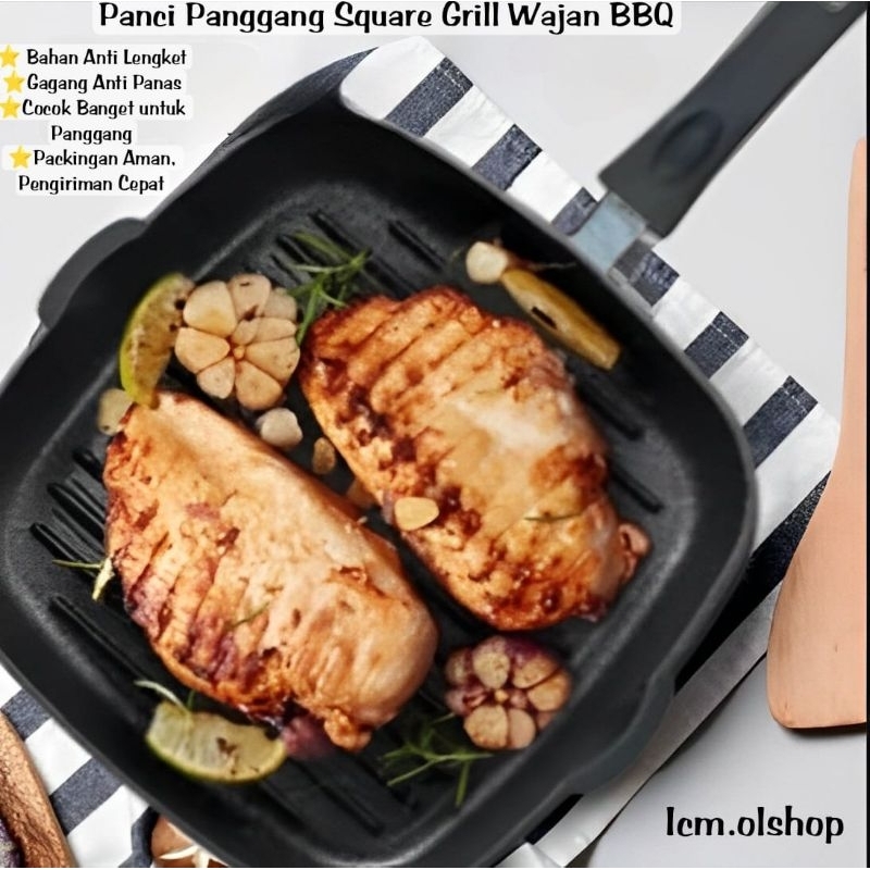Square Grill Pan ini cocok untuk melengkapi peralatan dapur Anda, dengan alat ini Anda bisa memanggang sosis,ikan,ayam,dll di atas kompor. Penggunaan yang sangat mudah, tinggal menyalakan kompor, tidak perlu kepanasan menggunakan arang. Terbuat dari bahan baja kuat dan tebal dengan lapisan anti lengket. Dengan desain gagang yang ergonomis pas ditangan terbuat dari kerja tahan panas.