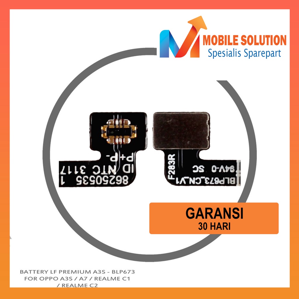 Spesifikasi produk : Model : BATRAI PREMIUM OPPO BLP673 / A3S / A7 / REALME C1 / REALME C2 Capasitas : 4230mAh Fisik Barang : Barang di jamin 100% Baru "Sebelum memakai battery di pastikan untuk melepas plastik ANTI PANAS , plastik ANTI PANAS berada di dekat connector battery atau kuningan battery"