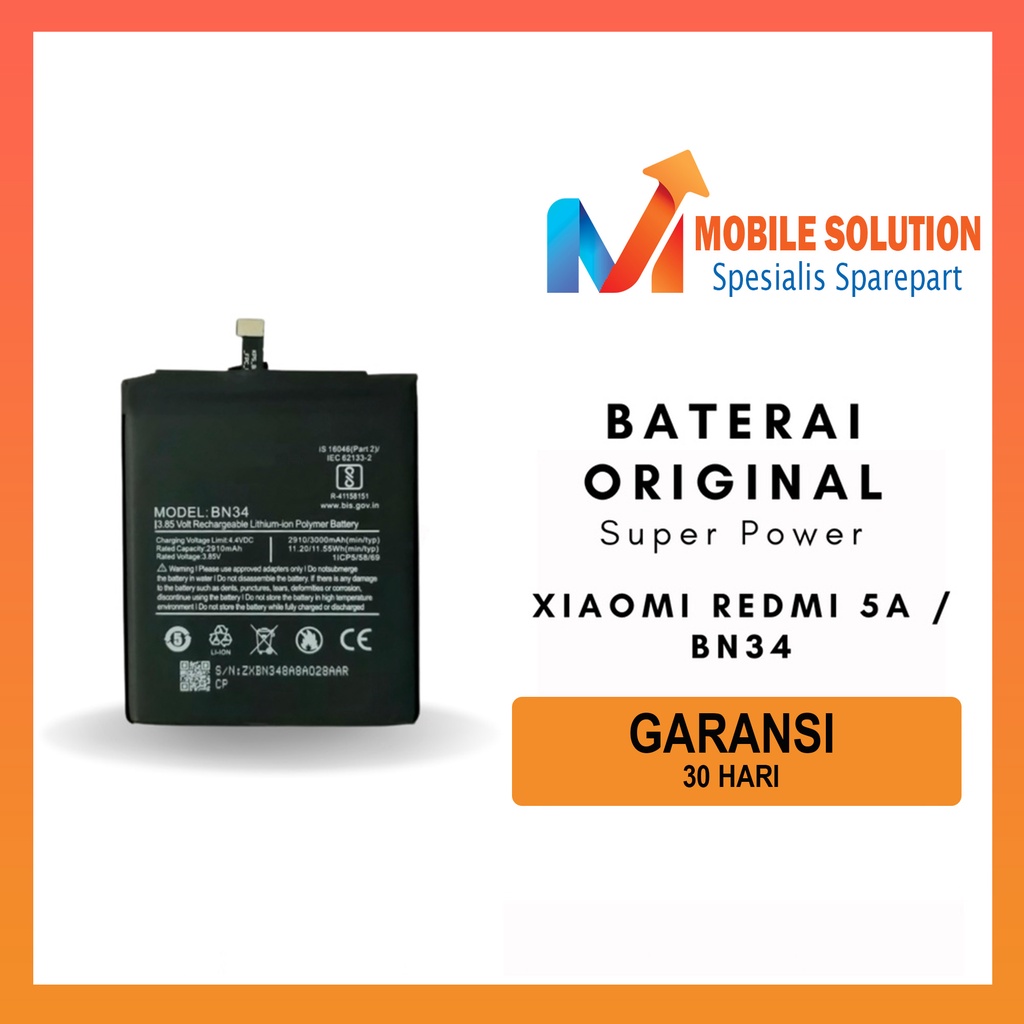 Grosir Baterai Xiaomi Redmi 5a / Baterai BN34 Super Power Garansi 1 Bulan + PackingGrosir Baterai Xiaomi Redmi 5a / Baterai BN34 Super Power Garansi 1 Bulan + Packing