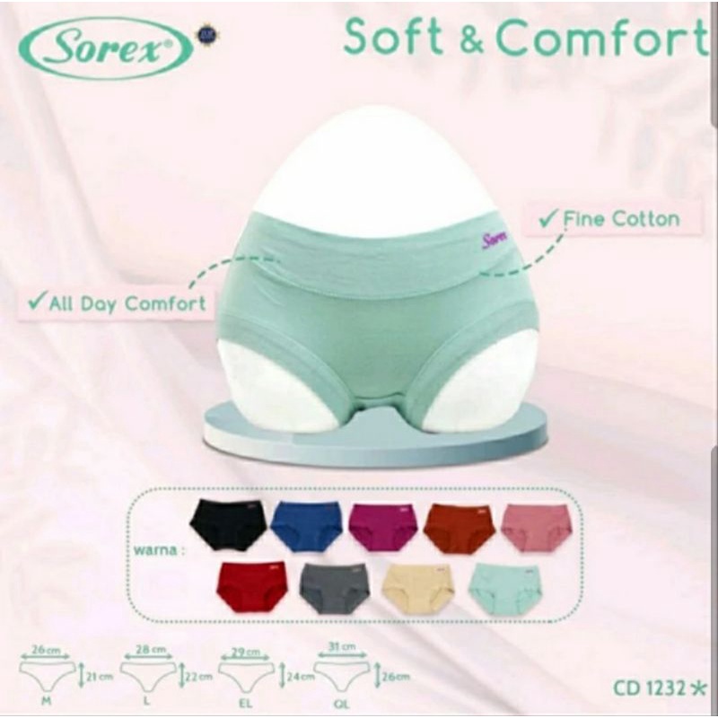 Keterangan: Celana dalam wanita merek Sorex Super Soft 1232 terbuat dari bahan katun halus berkualitas, Celana dalam ini dapat menyerap keringat dengan baik, bagian pinggang dan selangkangannya berbentuk karet lebar sehingga tidak meninggalkan bekas karet celana dalam, Sangat nyaman dipakai untuk beraktifitas apa saja sepanjang hari, ditambah dengan hiasan bertuliskan sorex timbul di sebelah kiri atas membuat pemakai terlihat sexy.