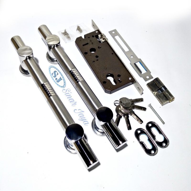 ▪︎Model : Handlle pintu + set kunci ▪︎Bahan : Stainless, kuat dan tahan lama ▪︎Panjang : 33cm ▪︎diameter : 1" ▪︎Harga tertera adalah harga per 1 set, mendapat 2 buah handle + set kunci body pelor ▪︎Handmade dari tangan pertama, selalu ada/ ready stok karena kami produksi sendiri. Dijamin harga lebih murah ▪︎Panjang & ukuran bisa request ▪︎TERSEDIA ANEKA MACAM WARNA