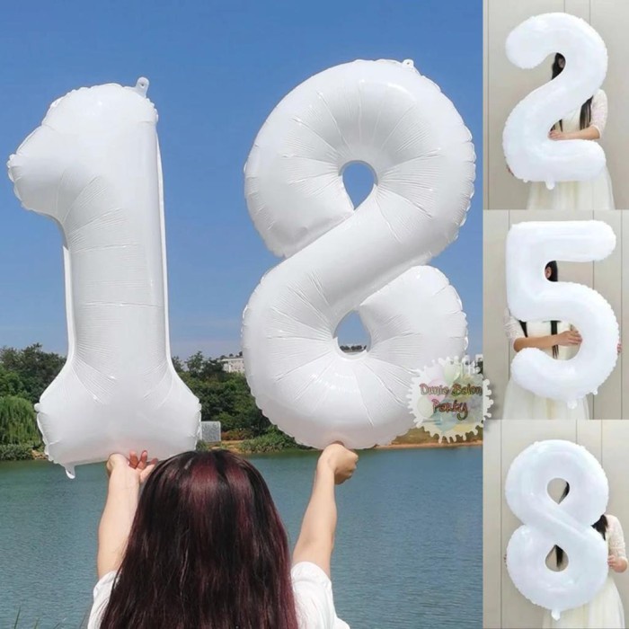 Souvenir & Party Supplies > Balloons > Angka, Huruf & Bentuk > Grosir Isi 50pcs- Balon Foil Angka 80cm / Balon Foil Angka Putih