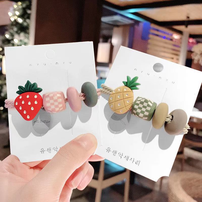 Aksesoris Fashion > Aksesoris Rambut > Ikat Rambut, Pita & Scrunchie > ✅Grosir Jam Senen - Ikat Rambut Aksen Manik Buah Gaya Korea Untuk Wanita / Ikat Rambut Bahan Karet Aksen Buah