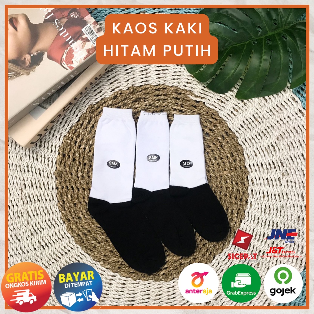 Kaos Kaki Sekolah Putih Hitam Bahan spandeks polyster cover (Kualitas terbaik sehingga tidak mudah melar) Warna putih hitam Terdapatt 3 pilihan ukuran: - SD: 21-22cm - SMP: 23-24cm - SMA: 25 - 26cm